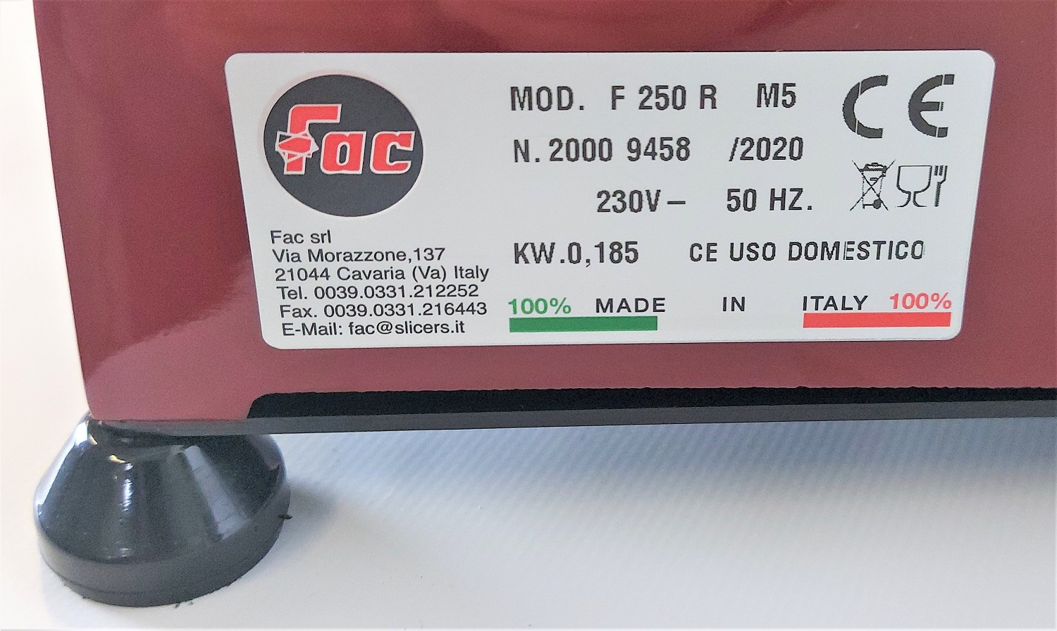 AFFETTATRICE MOD. F250R CE PER USO DOMESTICO ROSSA 230V 50HZ