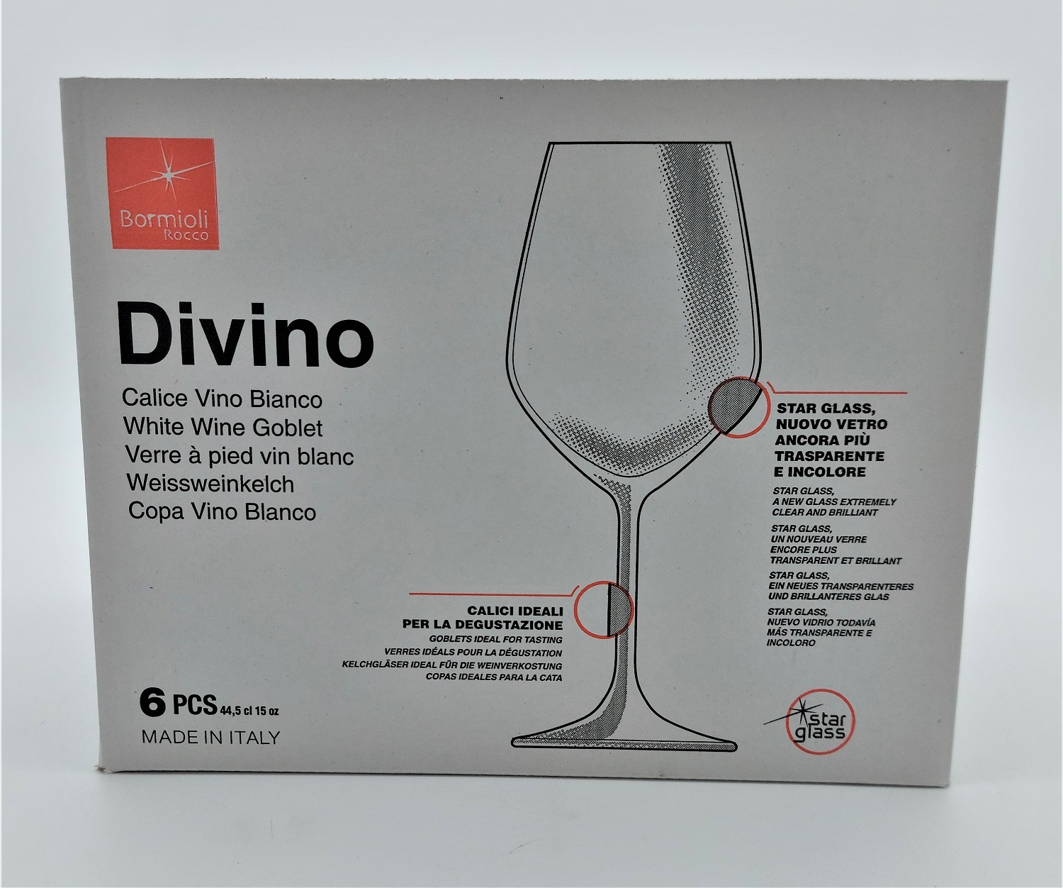 CALICE VETRO "DIVINO" VINO BIANCO 44,5CL H21,3xD8,8CM SET DA 12PZ