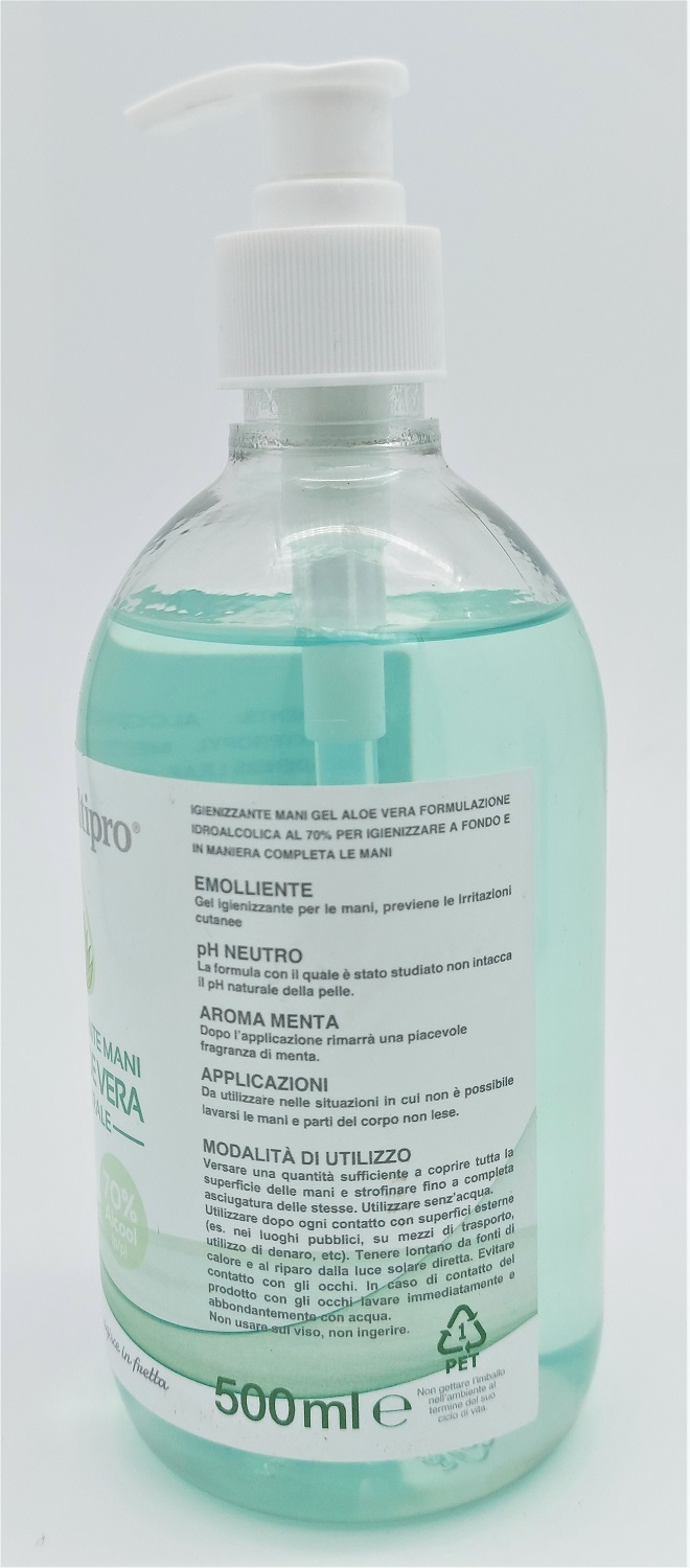 GEL IGIENIZZANTE MANI ALOE VERA NATURALE ALCOLICO 500ML