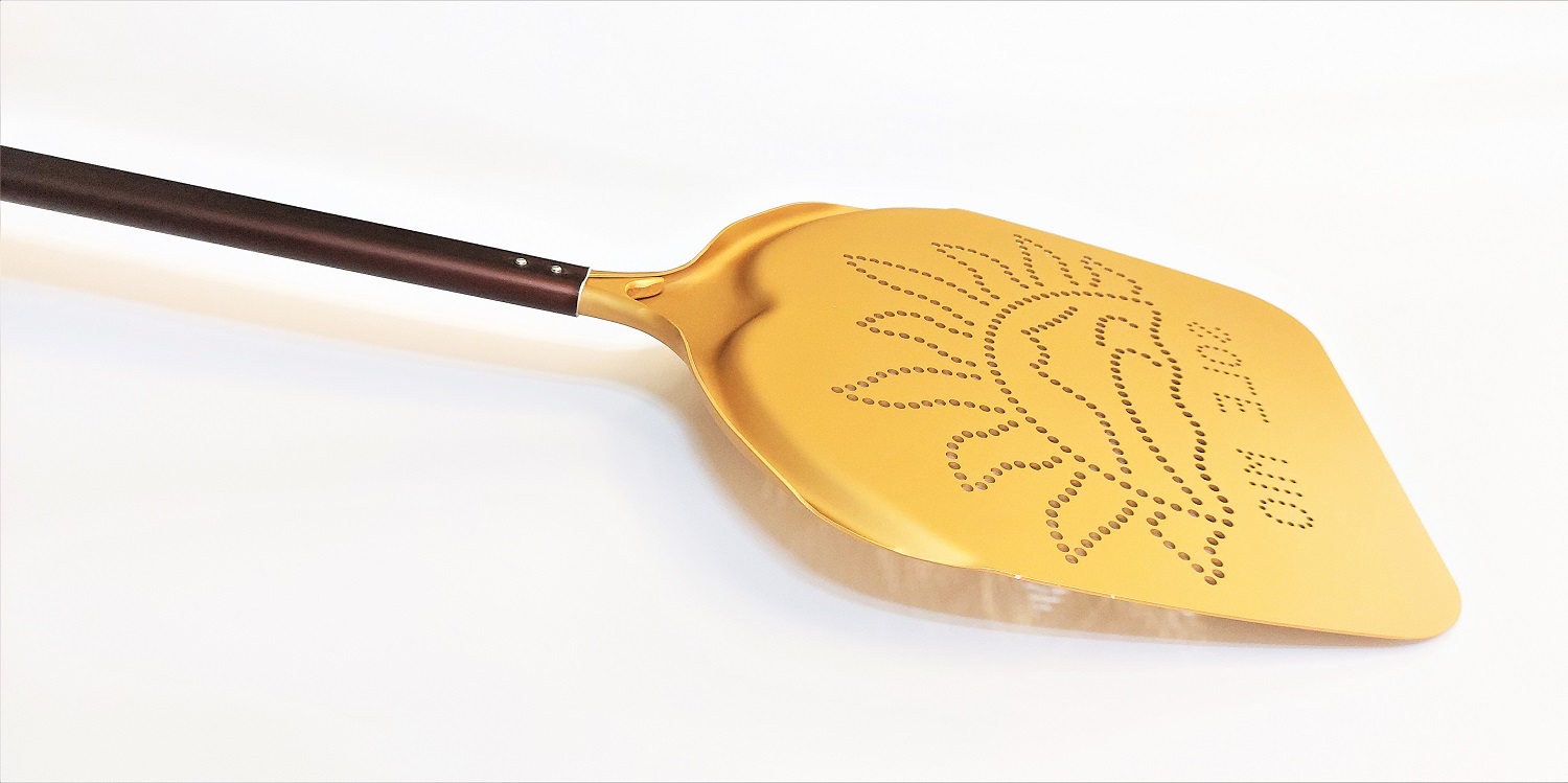 PALA "SOLE MIO" CON MANICO ROSSO FORATA 33CM H.190CM
