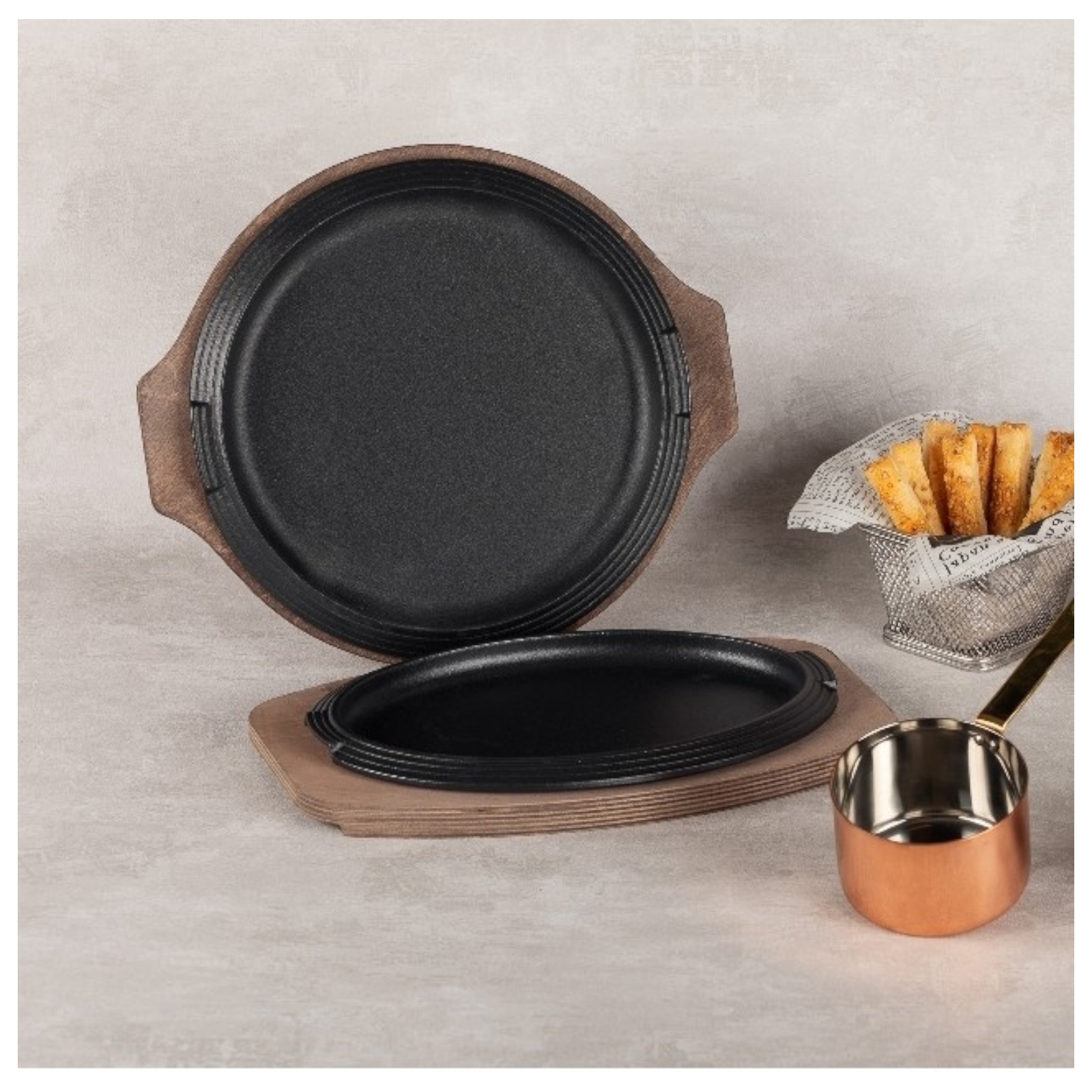 Piatto a servire ovale in ghisa con vassoio in legno cm 28x19 Ilsa